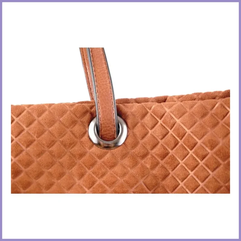 Női shopper válltáska nyomott négyzet mintával, velúr, szürke színben.
